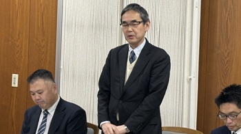 ![]() 委員会冒頭で挨拶する仲家専務 |